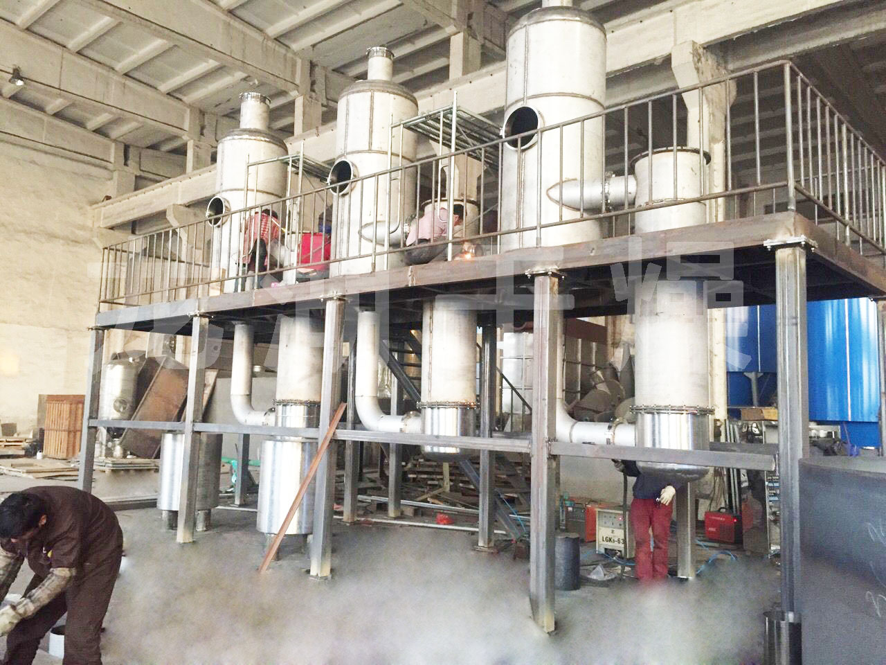 單效或多效降膜蒸發(fā)器,適用于牛奶、葡萄糖、淀粉、木糖、制藥、化工、生物工程、環(huán)保工程、廢液回收等行業(yè)進行低溫連續(xù)式蒸發(fā)濃縮,具有傳熱效率高,物料受熱時間短等主要特點,所以特別適用于熱敏性、粘滯性、發(fā)泡性等物料。